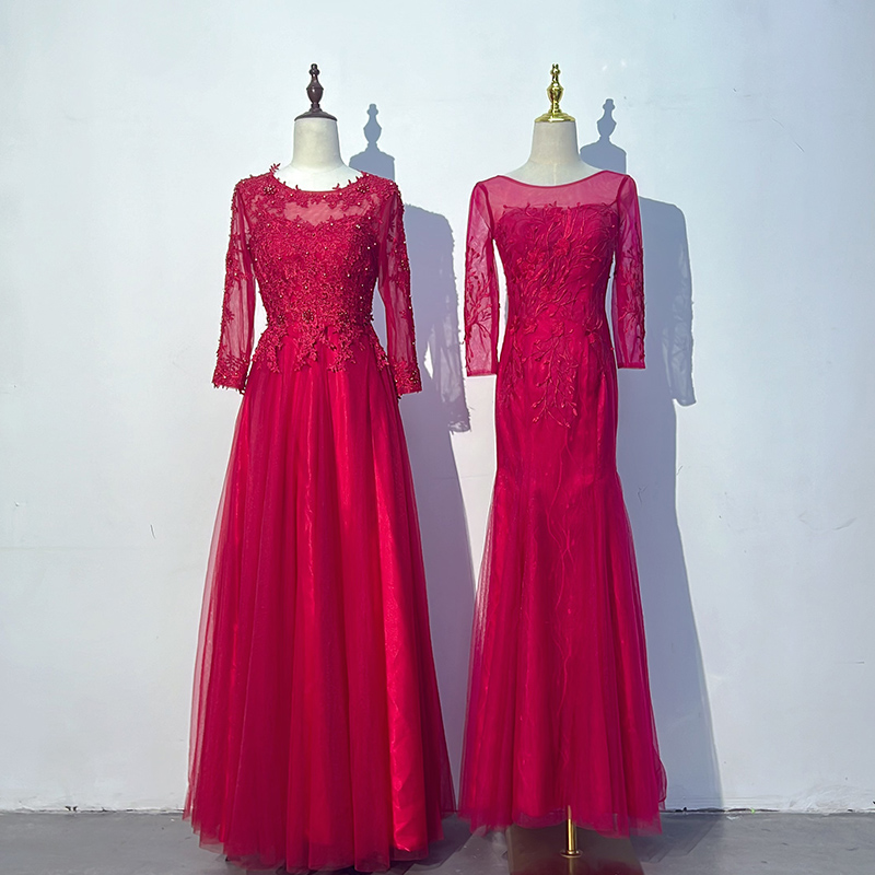 酒红色A摆+鱼尾