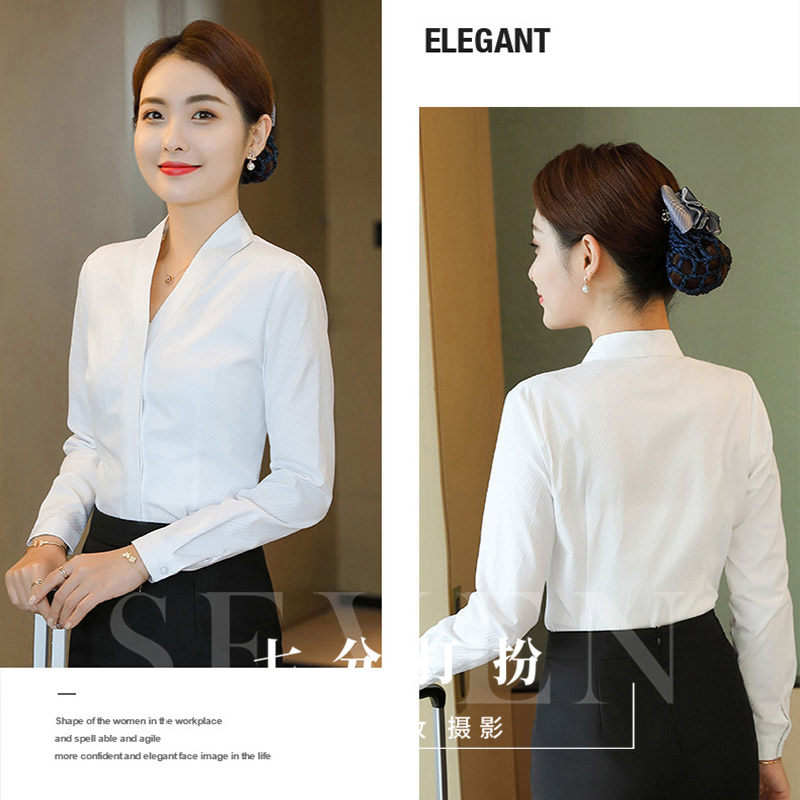 白色长袖V领