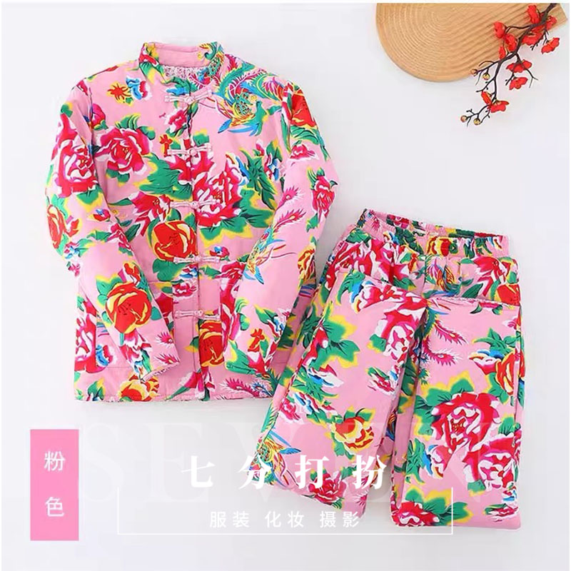 民国年代3857-4XL花棉袄粉